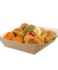 With its natural look, these large Colpac open Kraft trays can really set off your street food. The boxes are created from sturdy, recycled board that can be used with either cold foods such as halloumi salad or hot food such as chicken nuggets and chips. The recycled Kraft material means these boxes are also completely compostable in under 16 weeks if sent to commercial composting sites.